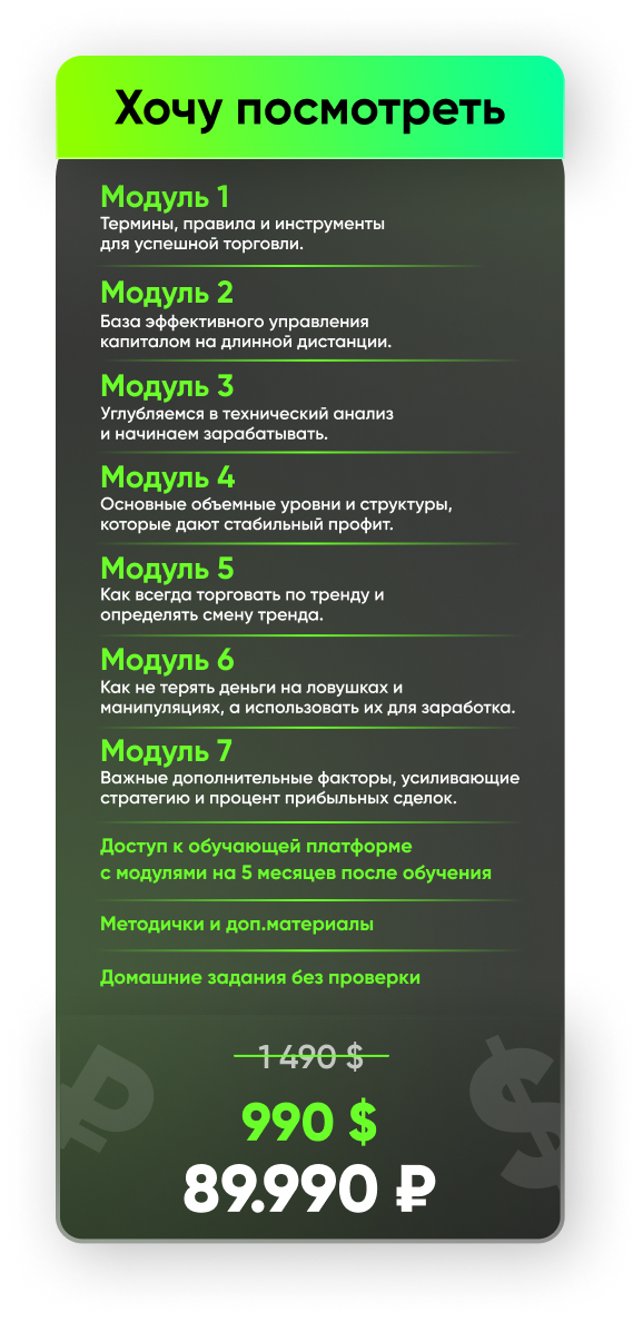 Основные объемные уровни и структуры, которые дают стабильный профит.